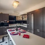 På lägenheten Unique, Elegant Bourtzi View Villa kan du koppla av på en terrass och njuta av en 20 minuters promenad till Krigsmuseum. Boendet består av 4 sovrum och 4 badrum.